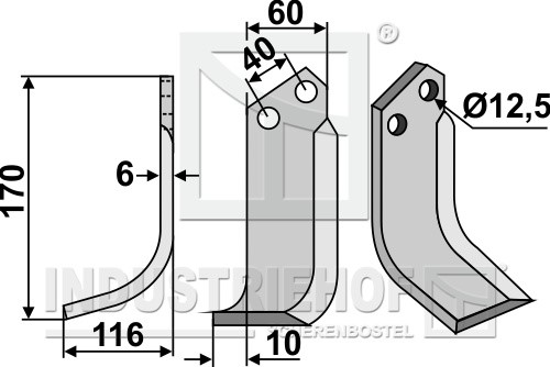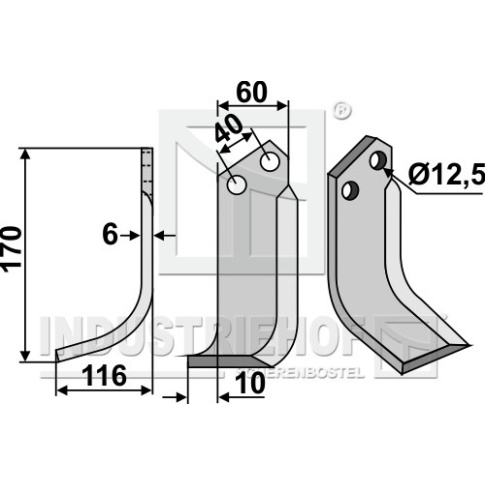 Grubość:6 Długość:170 Odstęp pomiędzy otworami:40 Szerokość:60 Otwór:12,5