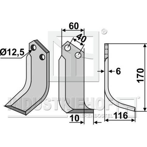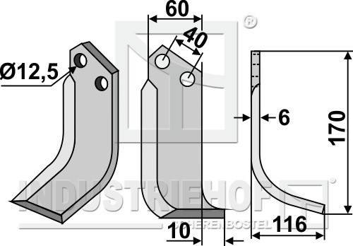 Grubość:6 Długość:170 Odstęp pomiędzy otworami:40 Szerokość:60 Otwór:12,5
