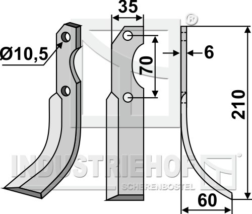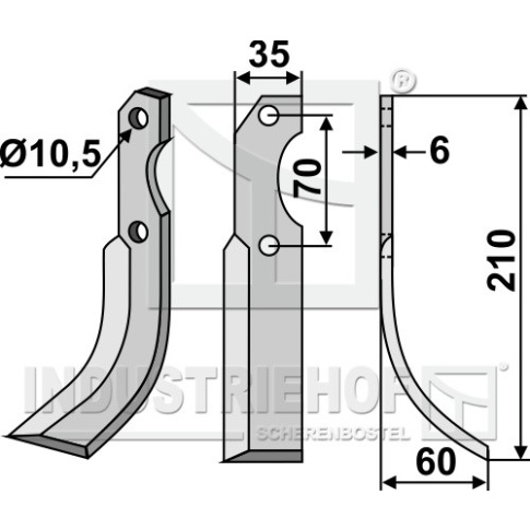 Grubość:6 Długość:210 Odstęp pomiędzy otworami:70 Szerokość:35 Otwór:10,5