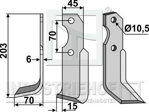 Grubość:6 Długość:203 Odstęp pomiędzy otworami:70 Szerokość:45 Otwór:10,5
