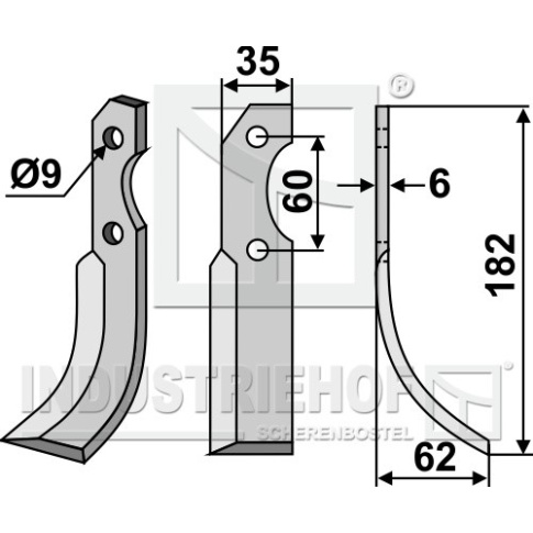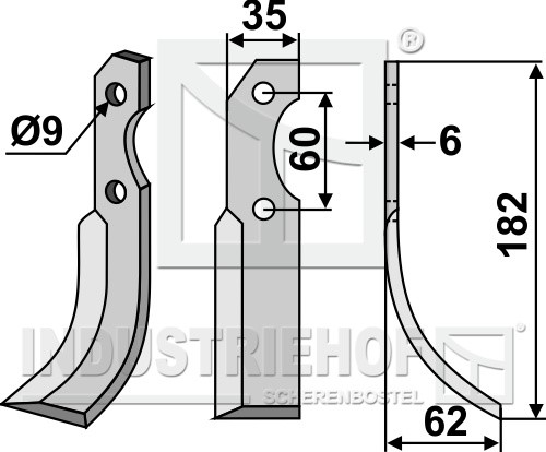 Grubość:6 Długość:182 Odstęp pomiędzy otworami:60 Szerokość:35 Otwór:9