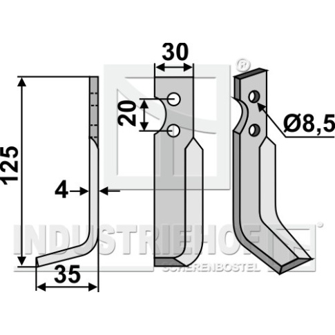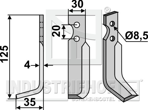 Grubość:4 Długość:125 Odstęp pomiędzy otworami:20 Szerokość:30 Otwór:8,5