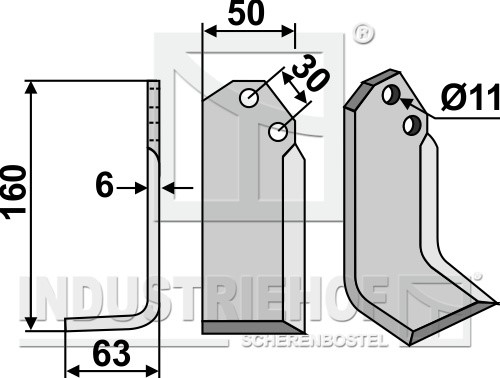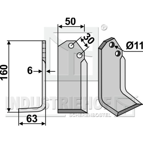 Grubość:6 Długość:160 Odstęp pomiędzy otworami:30 Szerokość:50 Otwór:11