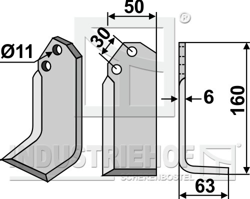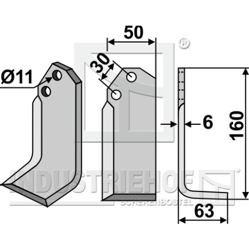 Grubość:6 Długość:160 Odstęp pomiędzy otworami:30 Szerokość:50 Otwór:11