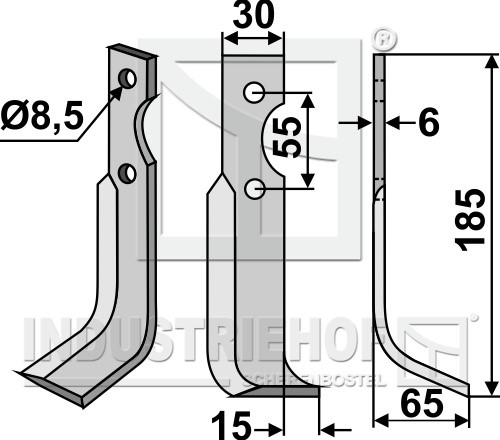 Grubość:6 Długość:185 Odstęp pomiędzy otworami:55 Szerokość:30 Otwór:8,5