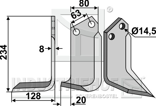 Grubość:8 Długość:234 Odstęp pomiędzy otworami:63 Szerokość:80 Otwór:14,5