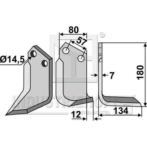 Grubość:7 Długość:180 Odstęp pomiędzy otworami:57 Szerokość:80 Otwór:14,5