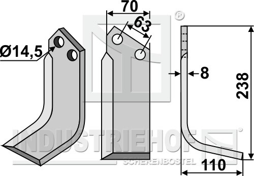 Grubość:8 Długość:238 Odstęp pomiędzy otworami:63 Szerokość:70 Otwór:14,5