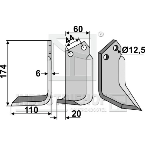 Grubość:6 Długość:174 Odstęp pomiędzy otworami:44 Szerokość:60 Otwór:12,5