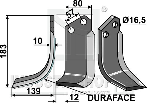 Grubość:10 Długość:183 Odstęp pomiędzy otworami:57 Szerokość:80 Otwór:16,5