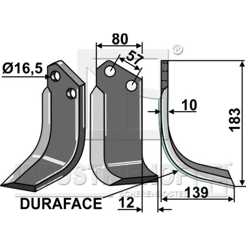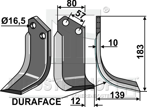 Grubość:10 Długość:183 Odstęp pomiędzy otworami:57 Szerokość:80 Otwór:16,5
