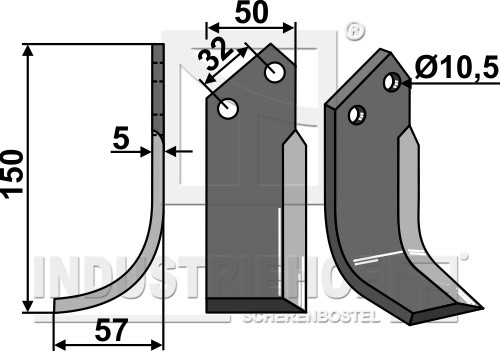 Grubość:5 Długość:150 Odstęp pomiędzy otworami:32 Szerokość:50 Otwór:10,5