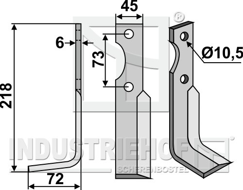 Grubość:6 Długość:218 Odstęp pomiędzy otworami:73 Szerokość:45 Otwór:10,5