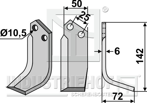 Grubość:6 Długość:142 Odstęp pomiędzy otworami:25 Szerokość:50 Otwór:10,5