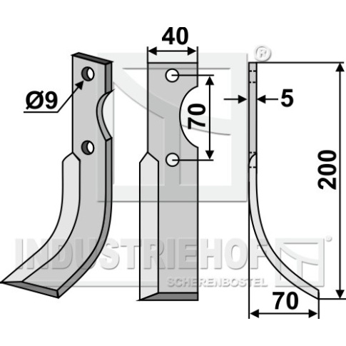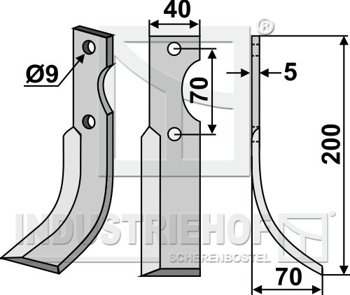 Grubość:5 Długość:200 Odstęp pomiędzy otworami:70 Szerokość:40 Otwór:9