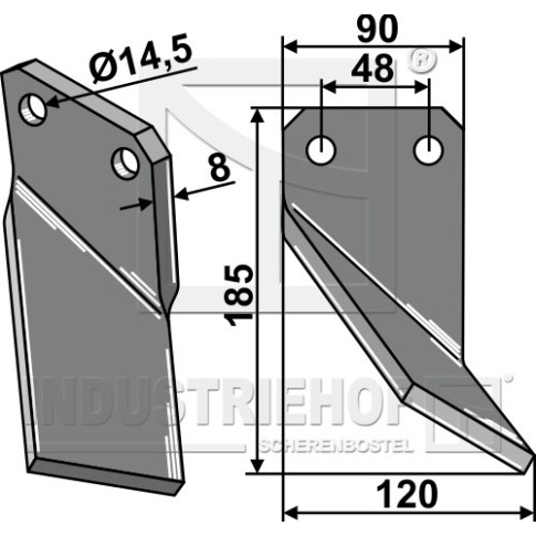 Grubość:8 Długość:185 Odstęp pomiędzy otworami:48 Szerokość:90 Otwór:14,5