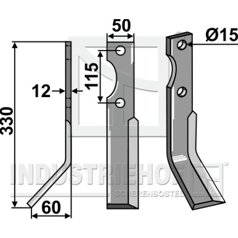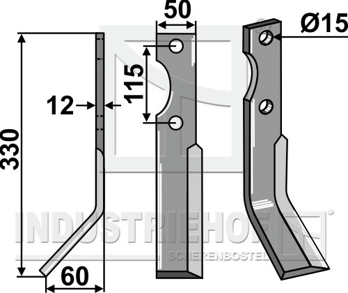 Grubość:12 Długość:330 Odstęp pomiędzy otworami:115 Szerokość:50 Otwór:15