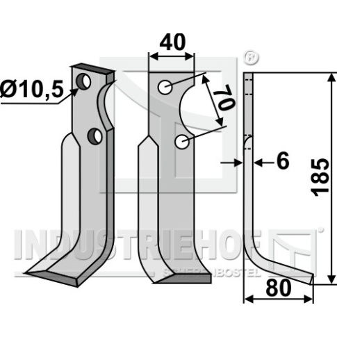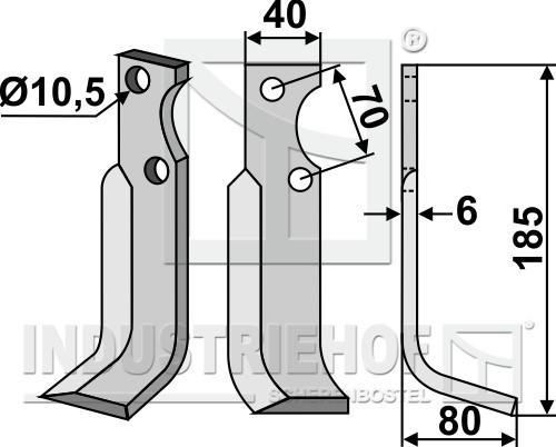 Grubość:6 Długość:185 Odstęp pomiędzy otworami:70 Szerokość:40 Otwór:10,5