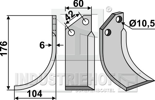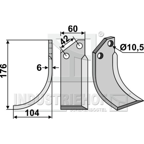 Grubość:6 Długość:176 Odstęp pomiędzy otworami:42 Szerokość:60 Otwór:10,5