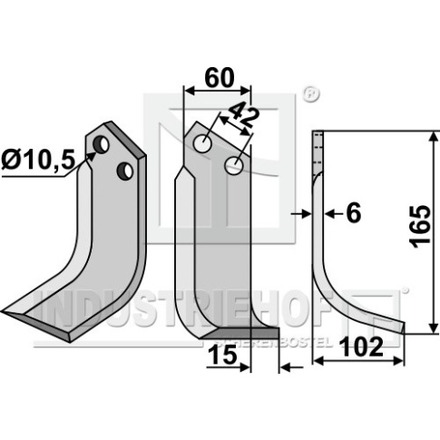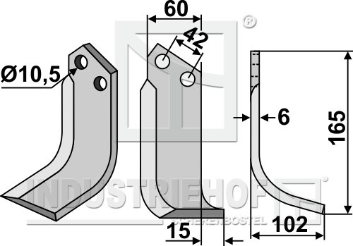 Grubość:6 Długość:165 Odstęp pomiędzy otworami:42 Szerokość:60 Otwór:10,5