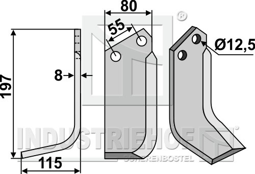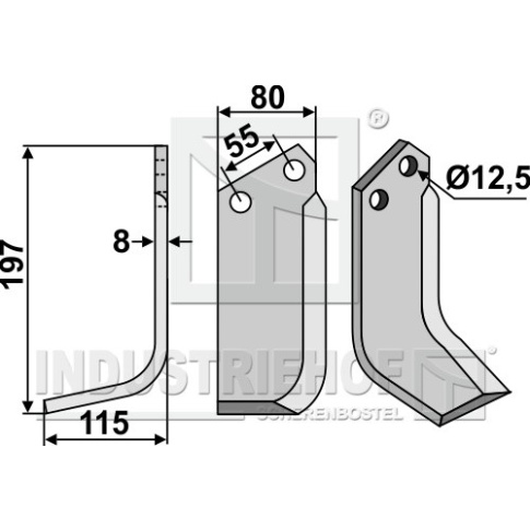 Grubość:8 Długość:197 Odstęp pomiędzy otworami:55 Szerokość:80 Otwór:12,5