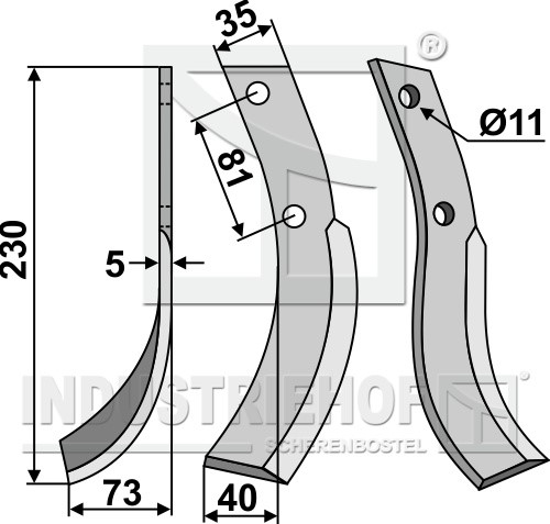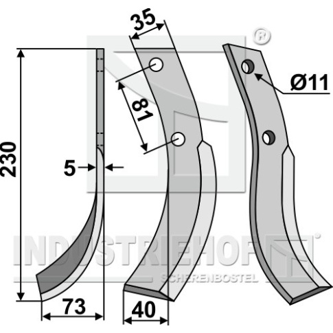 Grubość:5 Długość:230 Odstęp pomiędzy otworami:81 Szerokość:35 Otwór:11