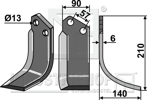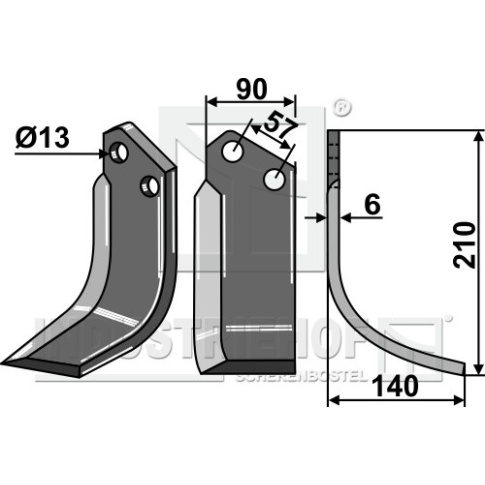 Grubość:6 Długość:210 Odstęp pomiędzy otworami:57 Szerokość:90 Otwór:13