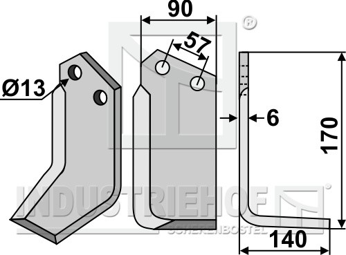 Grubość:6 Długość:170 Odstęp pomiędzy otworami:57 Szerokość:90 Otwór:13