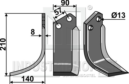 Grubość:8 Długość:210 Odstęp pomiędzy otworami:57 Szerokość:90 Otwór:13
