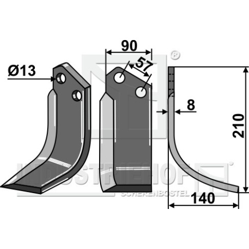 Grubość:8 Długość:210 Odstęp pomiędzy otworami:57 Szerokość:90 Otwór:13