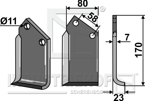 Grubość:7 Długość:170 Odstęp pomiędzy otworami:58 Szerokość:80 Otwór:11