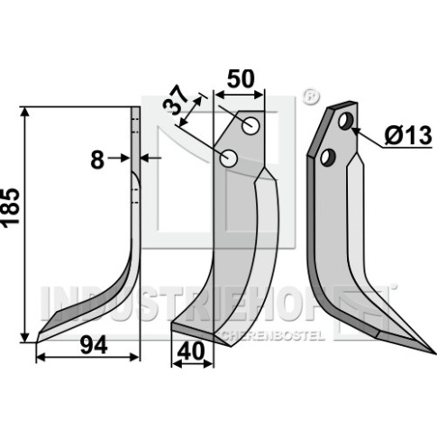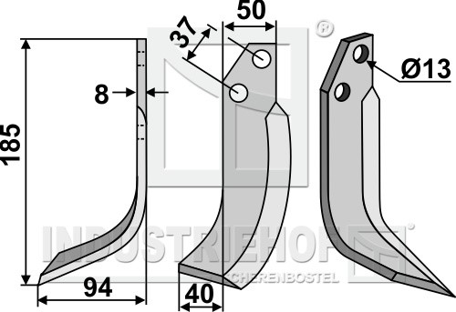 Grubość:8 Długość:185 Odstęp pomiędzy otworami:37 Szerokość:50 Otwór:13