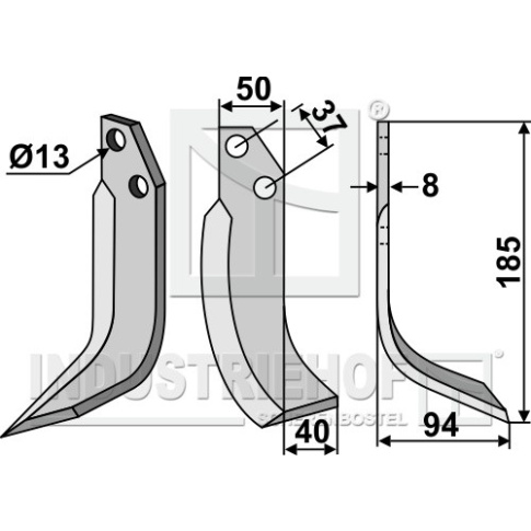 Grubość:8 Długość:185 Odstęp pomiędzy otworami:37 Szerokość:50 Otwór:13