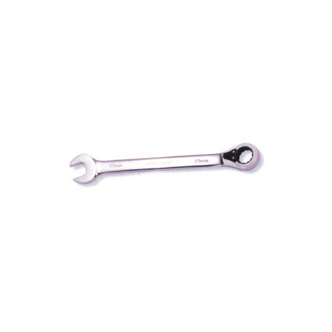 Klucz płasko-oczkowy z wysokiej jakości stali chromo-wanadowej, polerowane. Grzechotka 72-zęby pozwala na pracę w miejscach o ograniczonej przestrzeni (pojedynczy obrót klucza - 5°). Grzechotka posiadająca przełącznik do szybkiej zmiany kierunku (odkręcanie-dokręcanie). Stal ulepszana cieplnie. Końcówka oczkowa pod kątem 15° Dostępny w rozmiarach 8-19mm