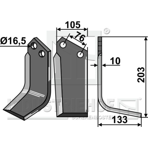 Grubość:10 Długość:203 Odstęp pomiędzy otworami:76 Szerokość:105 Otwór:16,5