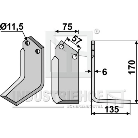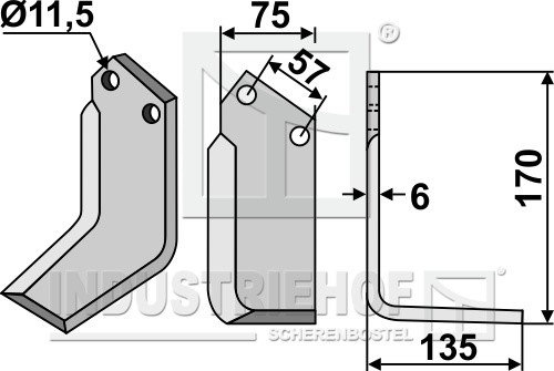 Grubość:6 Długość:170 Odstęp pomiędzy otworami:57 Szerokość:75 Otwór:11,5