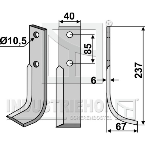 Grubość:6 Długość:237 Odstęp pomiędzy otworami:85 Szerokość:40 Otwór:10,5