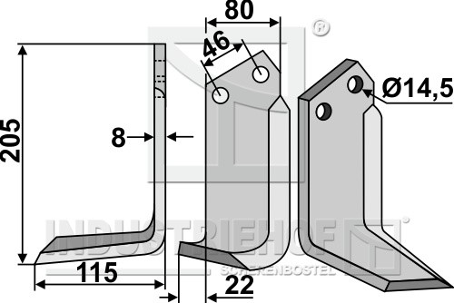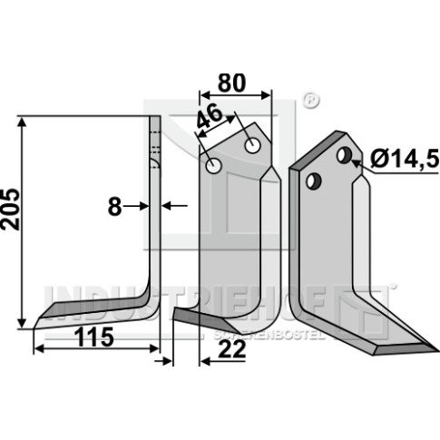 Grubość:8 Długość:205 Odstęp pomiędzy otworami:46 Szerokość:80 Otwór:14,5