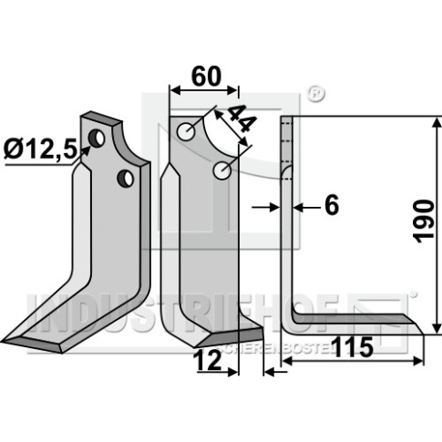 Grubość:6 Długość:190 Odstęp pomiędzy otworami:44 Szerokość:60 Otwór:12,5