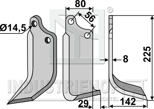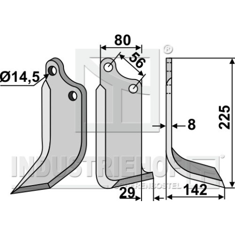 Grubość:8 Długość:225 Odstęp pomiędzy otworami:56 Szerokość:80 Otwór:14,5