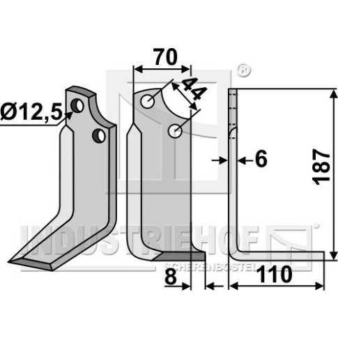 Grubość:6 Długość:187 Odstęp pomiędzy otworami:44 Szerokość:70 Otwór:12,5