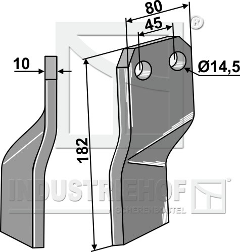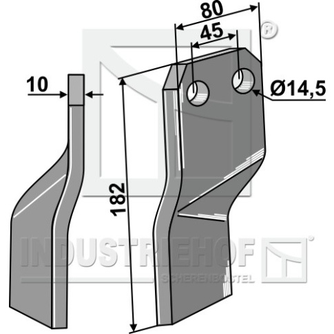 Grubość:10 Długość:182 Odstęp pomiędzy otworami:45 Szerokość:80 Otwór:14,5