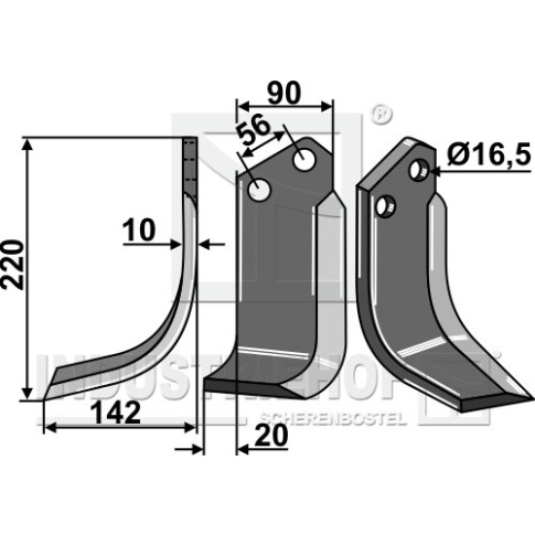 Grubość:10 Długość:220 Odstęp pomiędzy otworami:56 Szerokość:90 Otwór:16,5
