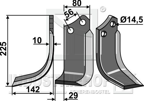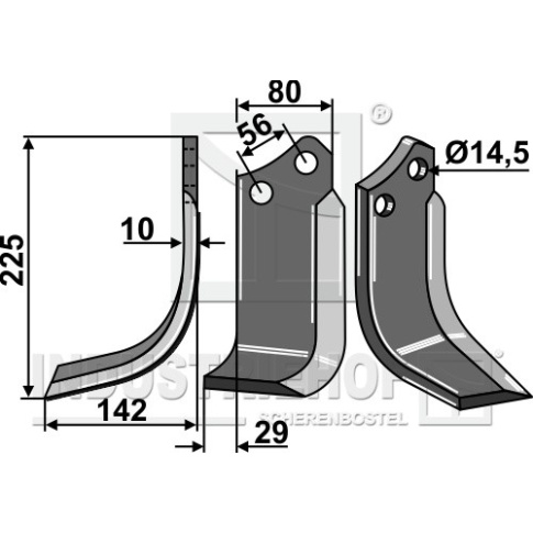 Grubość:10 Długość:225 Odstęp pomiędzy otworami:56 Szerokość:80 Otwór:14,5