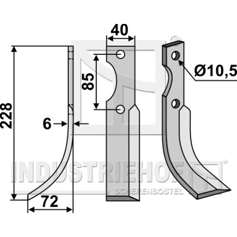 Grubość:6 Długość:228 Odstęp pomiędzy otworami:85 Szerokość:40 Otwór:10,5