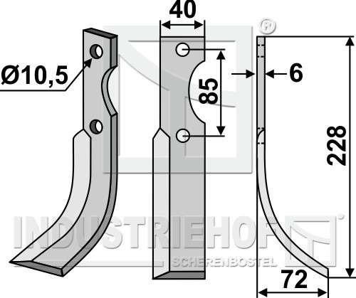 Grubość:6 Długość:228 Odstęp pomiędzy otworami:85 Szerokość:40 Otwór:10,5