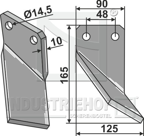 Grubość:10 Długość:165 Odstęp pomiędzy otworami:48 Szerokość:90 Otwór:14,5