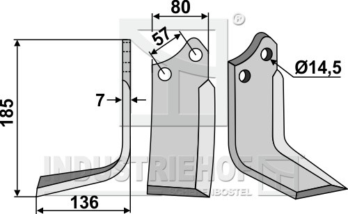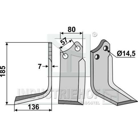 Grubość:7 Długość:185 Odstęp pomiędzy otworami:57 Szerokość:80 Otwór:14,5