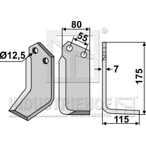 Grubość:7 Długość:175 Odstęp pomiędzy otworami:55 Szerokość:80 Otwór:12,5