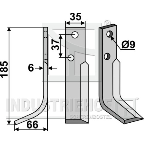 Grubość:6 Długość:185 Odstęp pomiędzy otworami:37 Szerokość:35 Otwór:9